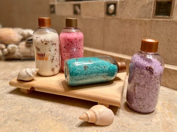 Sales de baño aromáticas con flores naturales secas en su interior. Ideales para relajarse y conectarse con las fragancias. Estéticas y decorativas.